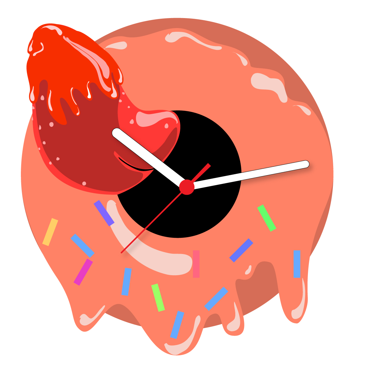Ceas de perete Obraznic formă de Gogoașă glazurata cu limbaCeasul Obraznic Gogoașă Tongue Surprise, design provocator, 30 cm