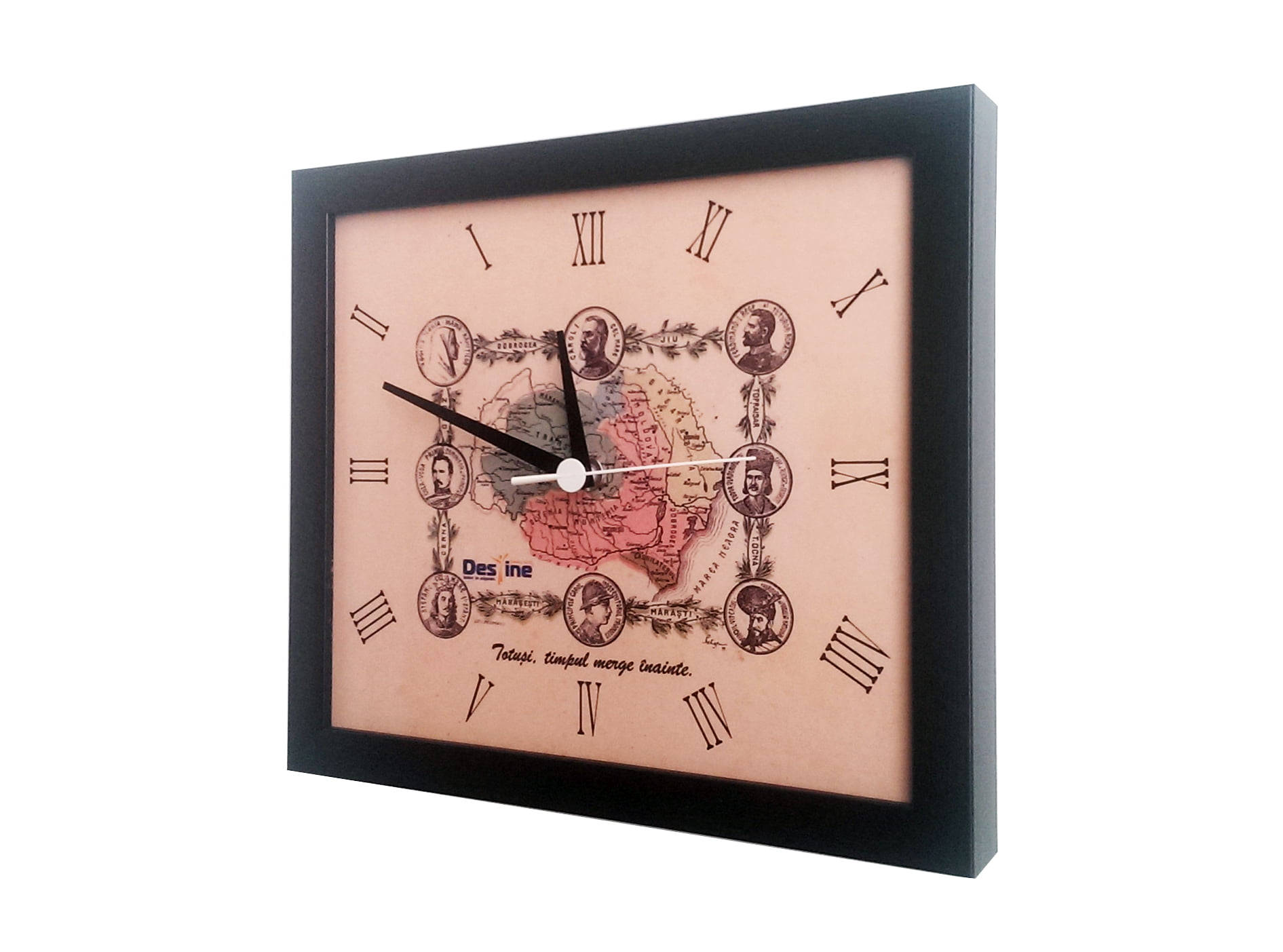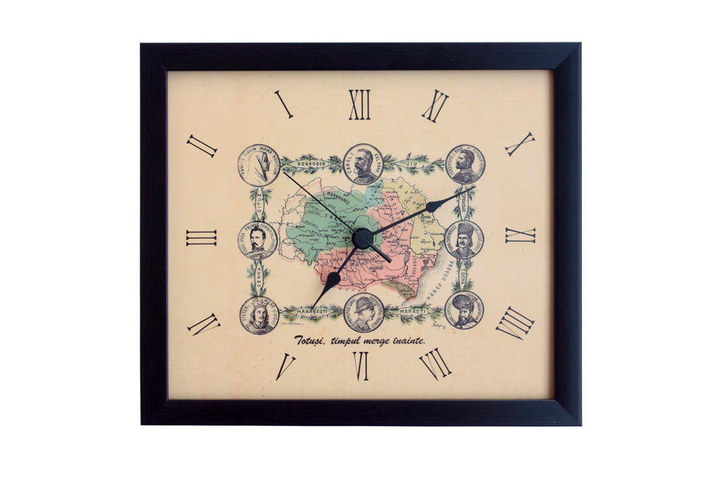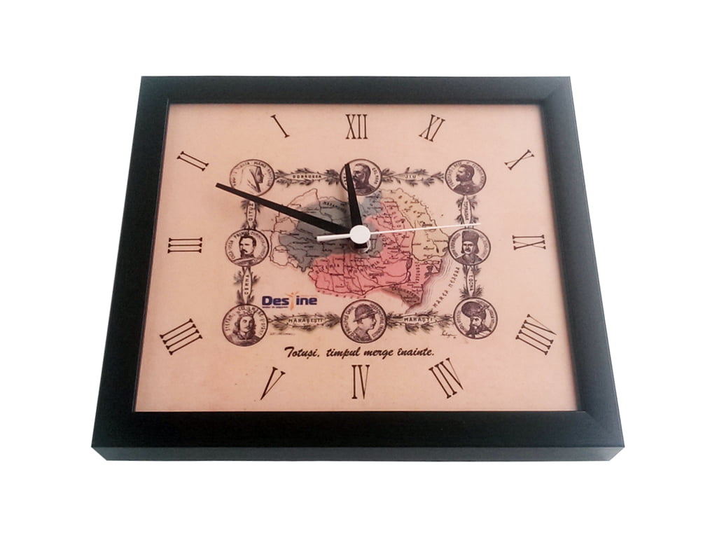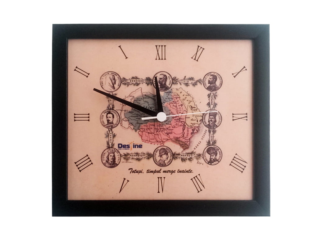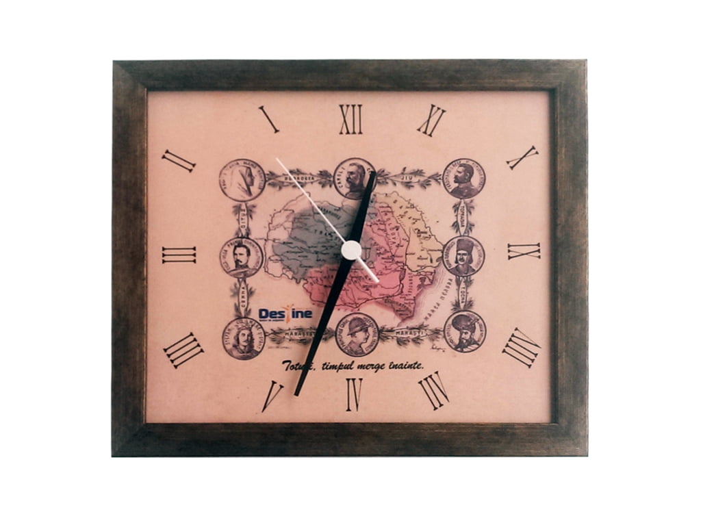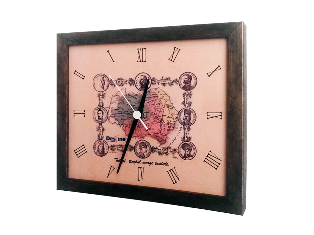 Pentru imaginea cadranului s-a folosit o hartă veche a României Mari din 1926. Orele au fost marcate folosind cifre romane și tot cadranul a fost înrămat precum un tablou. Ceasurile de perete pentru Destine au un aspect vizual vintage (vechi). Am folosit rame wenge dar și rame aurii.