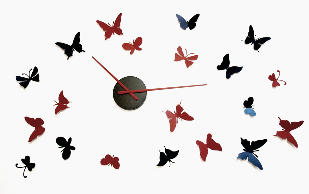 “Ai numai fluturi în cap” sau “ai fluturi în stomac”, dar mai nou poți să ai fluturi pe pereti ce zboară din ceas cu timpul, doar pentru tine.