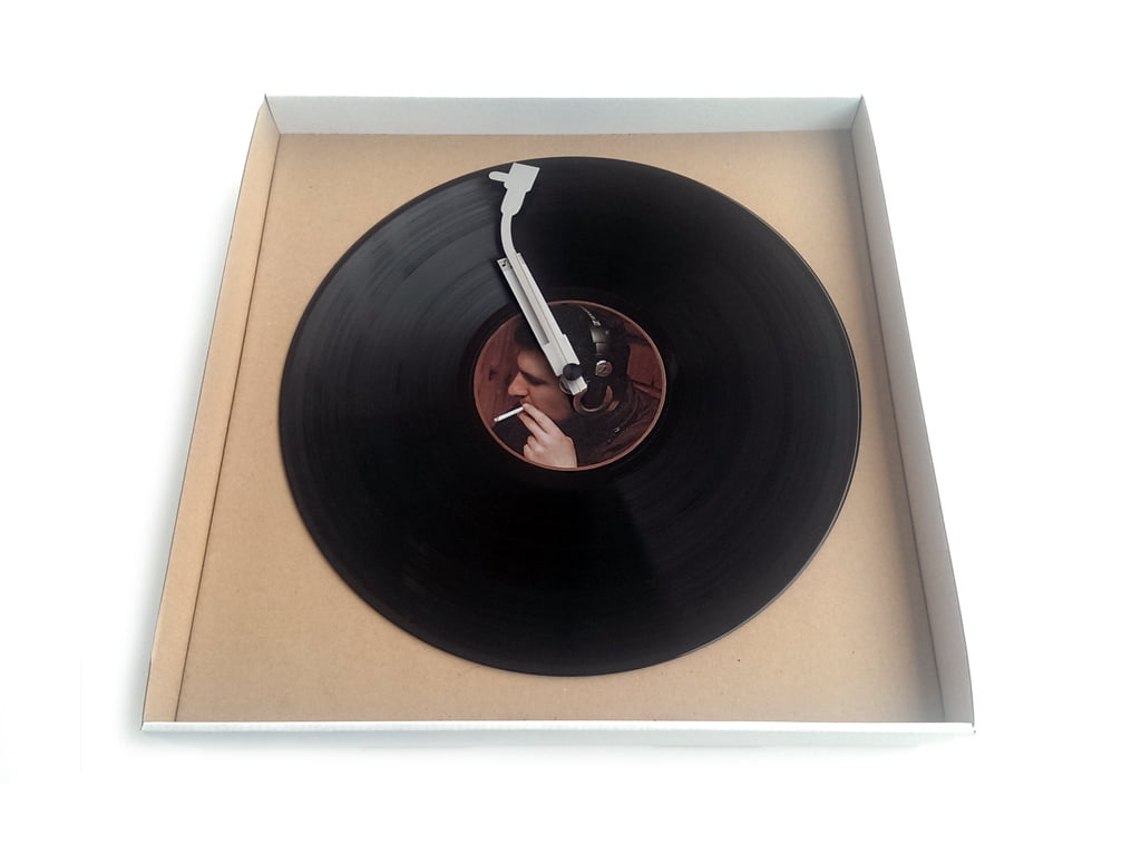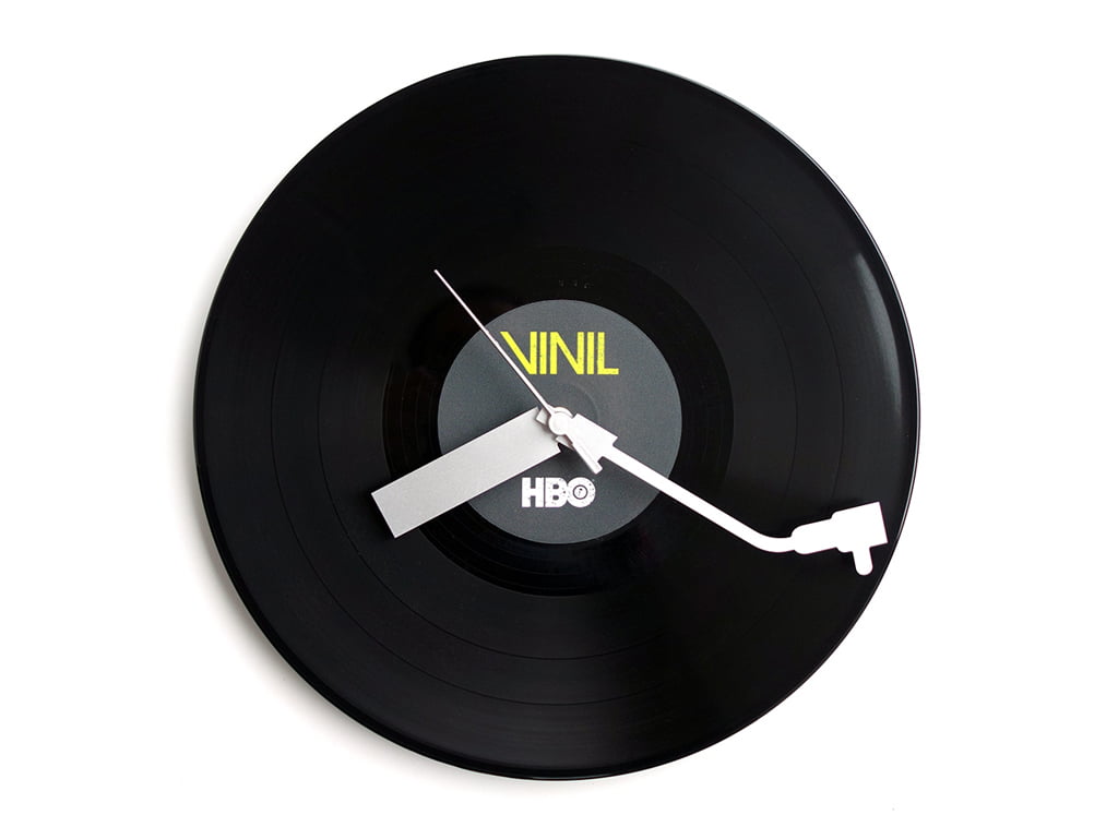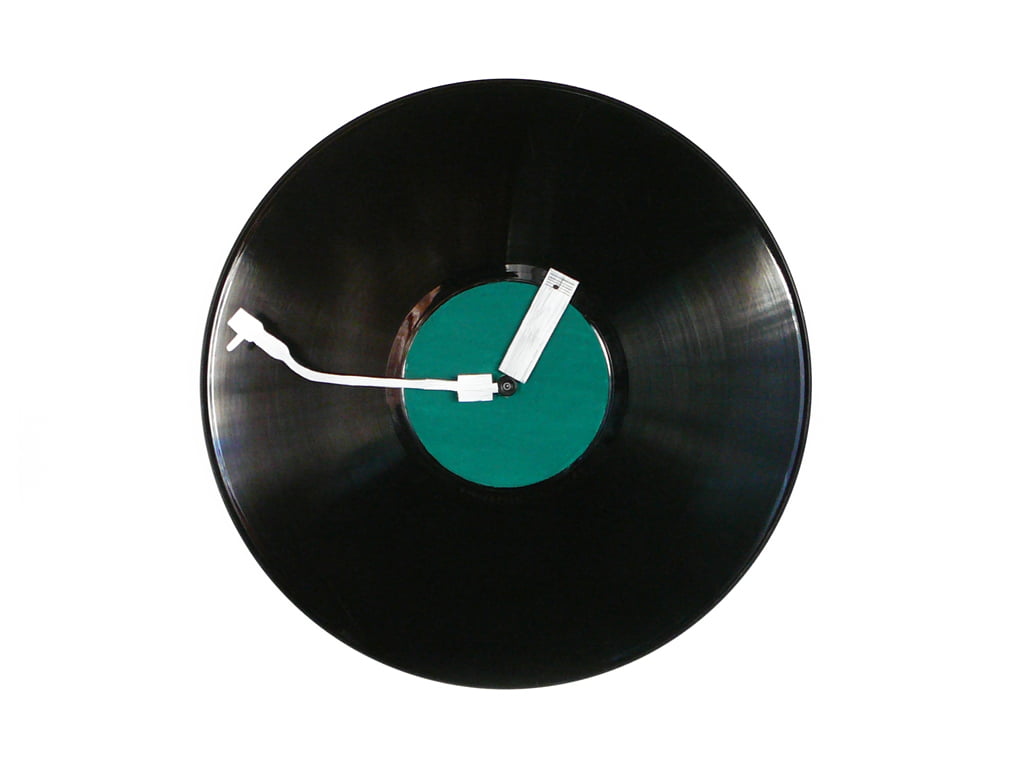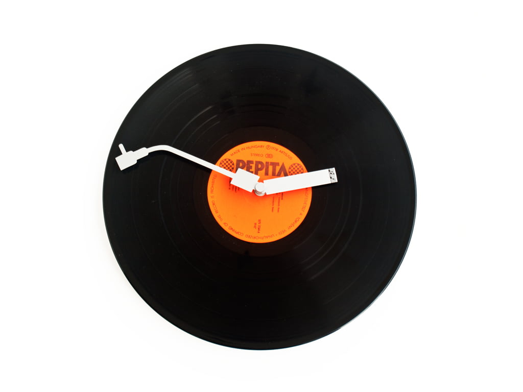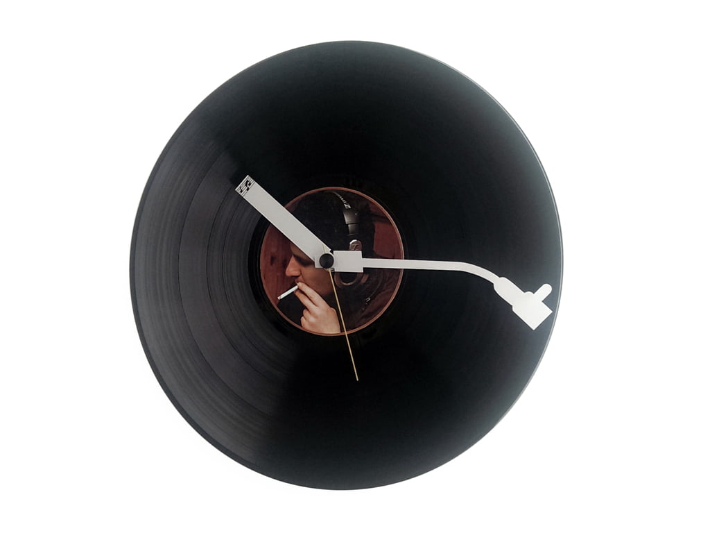 Acest ceas de perete realizat pe disc de vinil nu ar trebui să lipsească de pe peretele nici unui meloman. Poate fi un cadou inspirat pentru cei ce trăiesc cu şi pentru muzică. Limbile sunt realizate din metal, una dintre ele (minutarul) are forma brațului cu acul de citire, al unui pickup iar cealaltă, limba ce indică ora are mai multe note muzicale înscripționate pe ea.