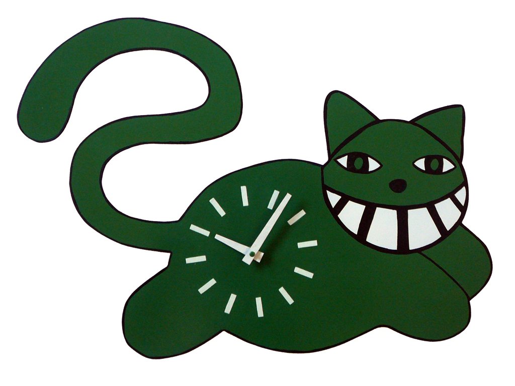 Acest model de ceas poate fi realizat și la alte dimensiuni sau pisica poate fi realizată cu dinții fosforescenți pentru a fi vizibili noaptea, și astfel se păstrează ideea originală din Alice în Țara Minunilor, a pisicii de Chesire.